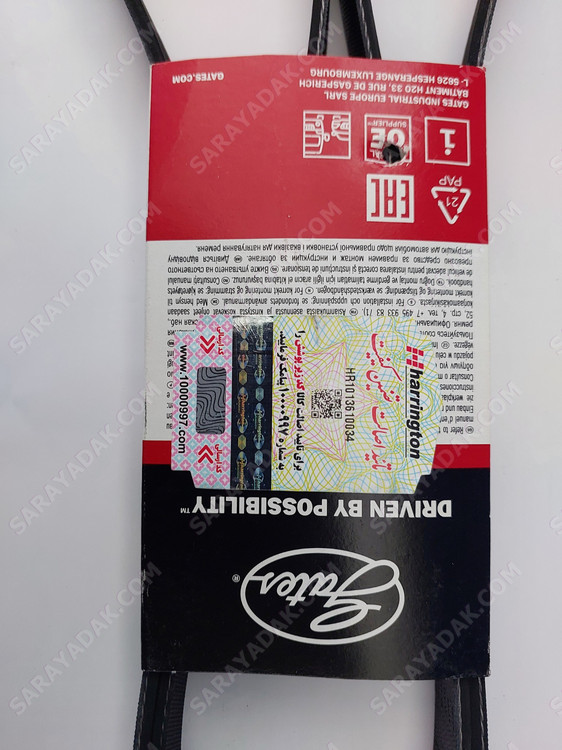 تسمه دینام پژو 405 پاور گریپ ( GATES ) اصلی با لیبل هرینگتون