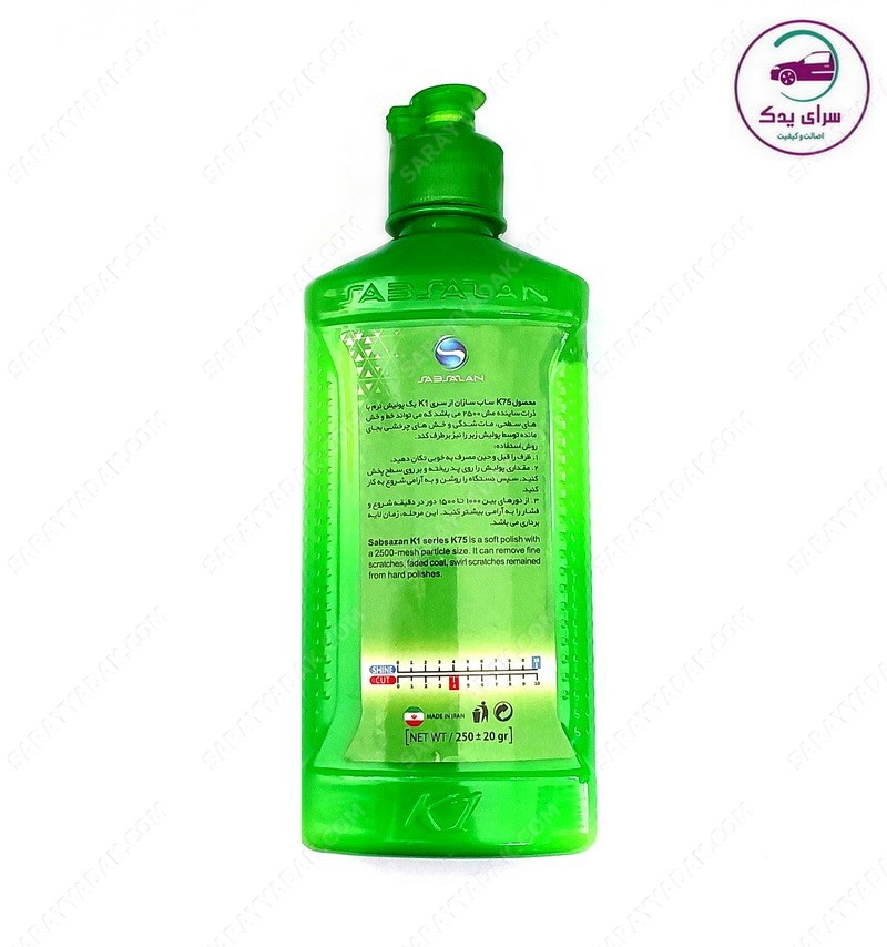 محصول K75 ساب سازان از سری K1 یک پولیش نرم با ذرات ساینده مش 2500 می باشد که می تواند خط و خش های سطحی ، مات شدگی و خط و خش های چرخشی بجای مانده توسط پولیش زبر را برطرف کند . این پولیش دارای دانه بندی نرم بوده و با حذف لایه ای نازک از روی کیلر، خط و خش های سطحی موجود روی آن را به طور کامل حذف میکند و هیچ آسیبی به سطح بدنه وارد نمیکند.