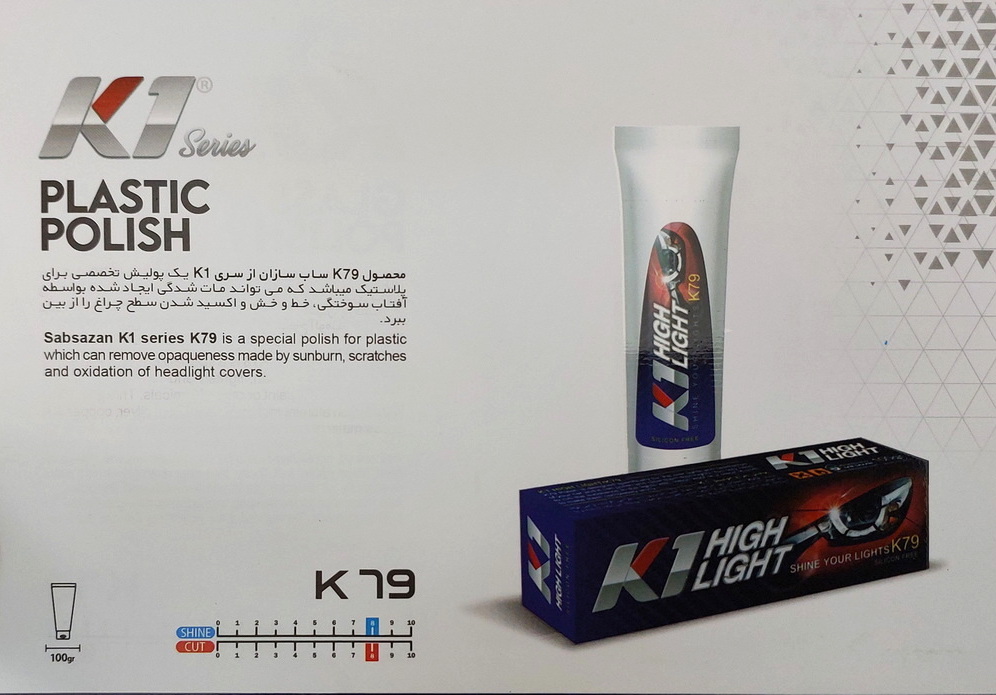 با گذشت زمان ، شفافیت چراغ های خودرو به خاطر تابش مستقیم اشعه UV کمتر شده و باعث اکسید شدن سطح آن و در نتیجه زرد شدن رنگ آن می شود. با استفاده از پولیش چراغ خودرو K79 ساب سازان تا حدود بسیار زیادی خط و خش و اکسیداسیون تشکیل شده از روی شیشه پاک می شود و ظاهر نو و درخشنده را به چراغ خودروهای شما باز می گرداند. این پولیش دارای فرمولاسیون پایه آب میباشد و به صورت تیوپهای 100 گرمی عرضه می شود.